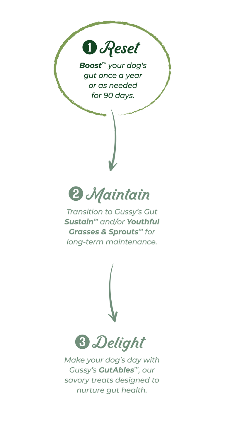 Our signature, 19-ingredient superfood formula to reset and reboot your dog's gut health within 90 days.